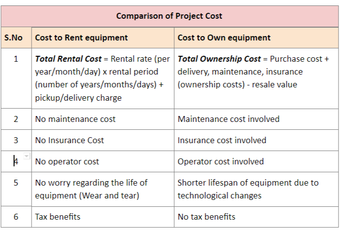 When you hire a piece of equipment, you will be provided with tax benefits, which you will be devoid of with your machinery. The most important thing to look at is the total cost of both the cases.